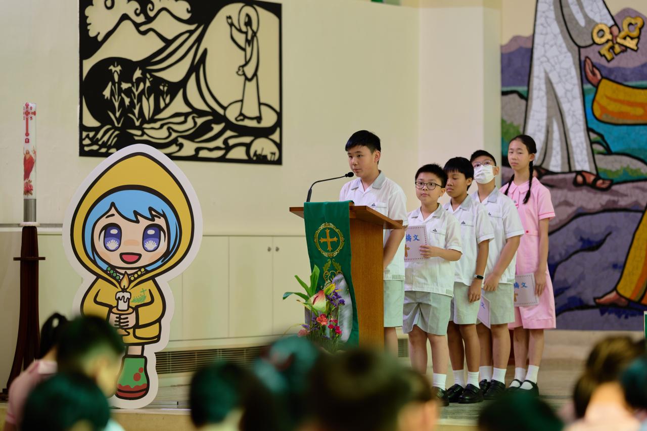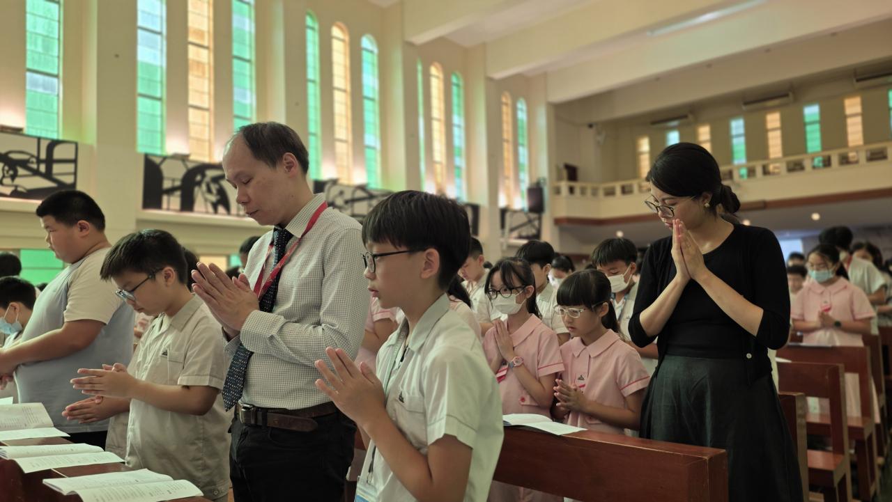四至六年級開學感恩祭於九月四日在聖伯多祿堂舉行,校監伍國寶神父勉勵同學要時常祈禱,親近天主,努力發展各方面的才能。侯校長以本年學主題「與主偕行」的口號:「港天之星意志堅,與主偕行創新天」,鼓勵同學要有堅毅的意志,立定志向,抗拒誘惑,克服困難,培養良好習慣,努力不懈,每個學生都可成為港天之星,成為天主的好兒女,與主偕行。