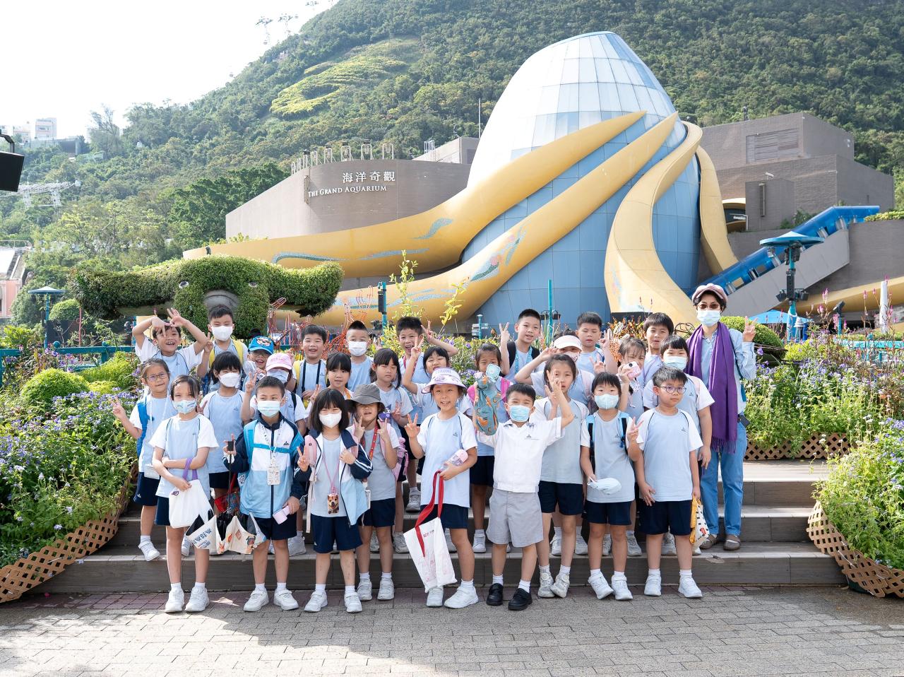 為配合本校推行環境教育,本校一及二年級學生分別於20/10/2025(一),到海洋公園進行全方位學習活動。學生透過體驗式戶外參觀活動,參觀海洋奇觀並與海岸生物近距離接觸,欣賞牠們特別的身體構造,並透過層層疊遊戲解構海洋食物鏈密不可分的關係,以助完成專題研習「海洋生物初接觸」,欣賞天主所創造的海洋世界。