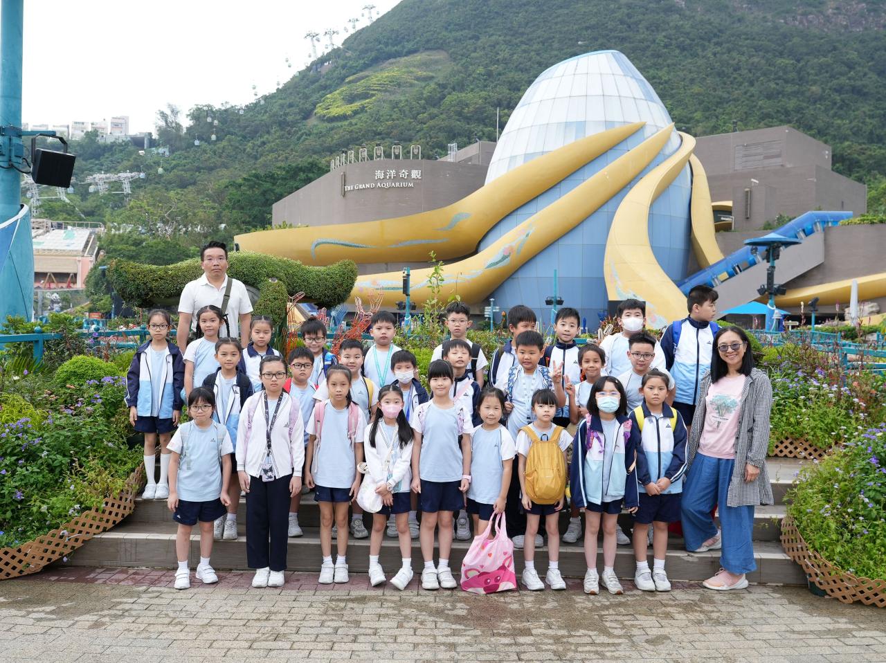 為配合本校推行環境教育,本校三及四年級學生分別於27/10/2025(一),到海洋公園進行全方位學習活動。學生透過體驗式戶外參觀活動,了解香港珊瑚的特徵,認識珊瑚生態系統以及海洋公園珊瑚保育工作,並透過科學實驗引導學生思考珊瑚生態面臨的威脅,發掘保育珊瑚的方法,以助完成專題研習「珊瑚拯救隊」,並宣揚保育珊瑚的訊息。