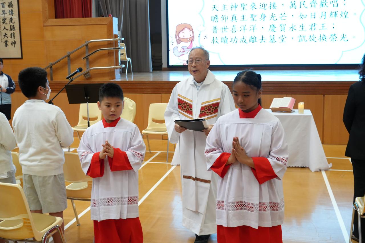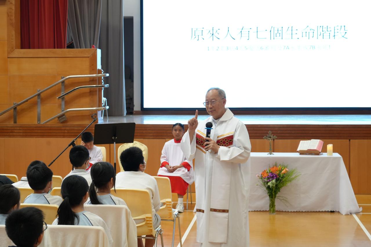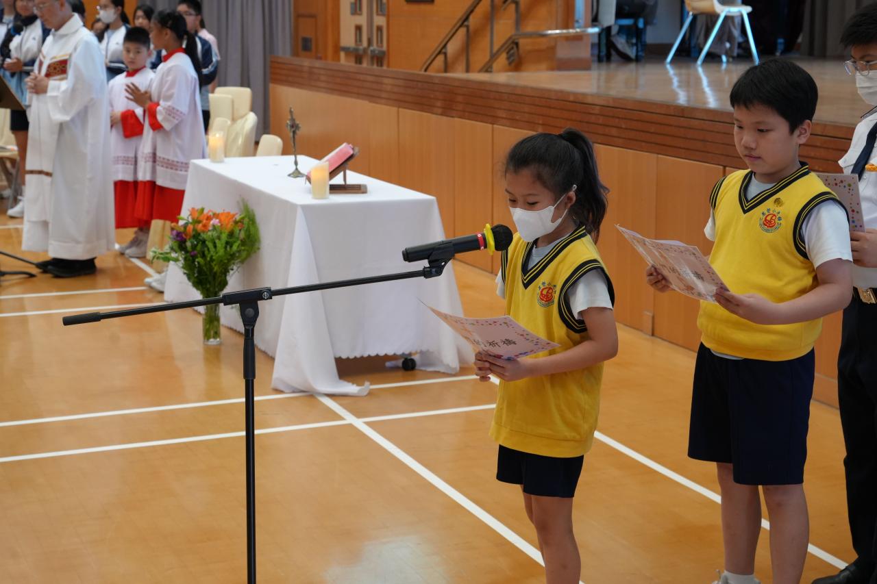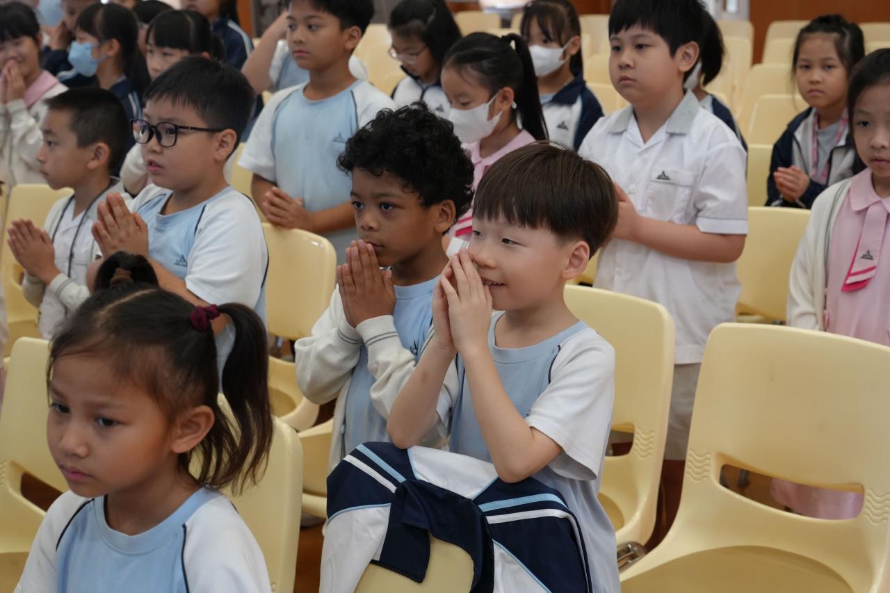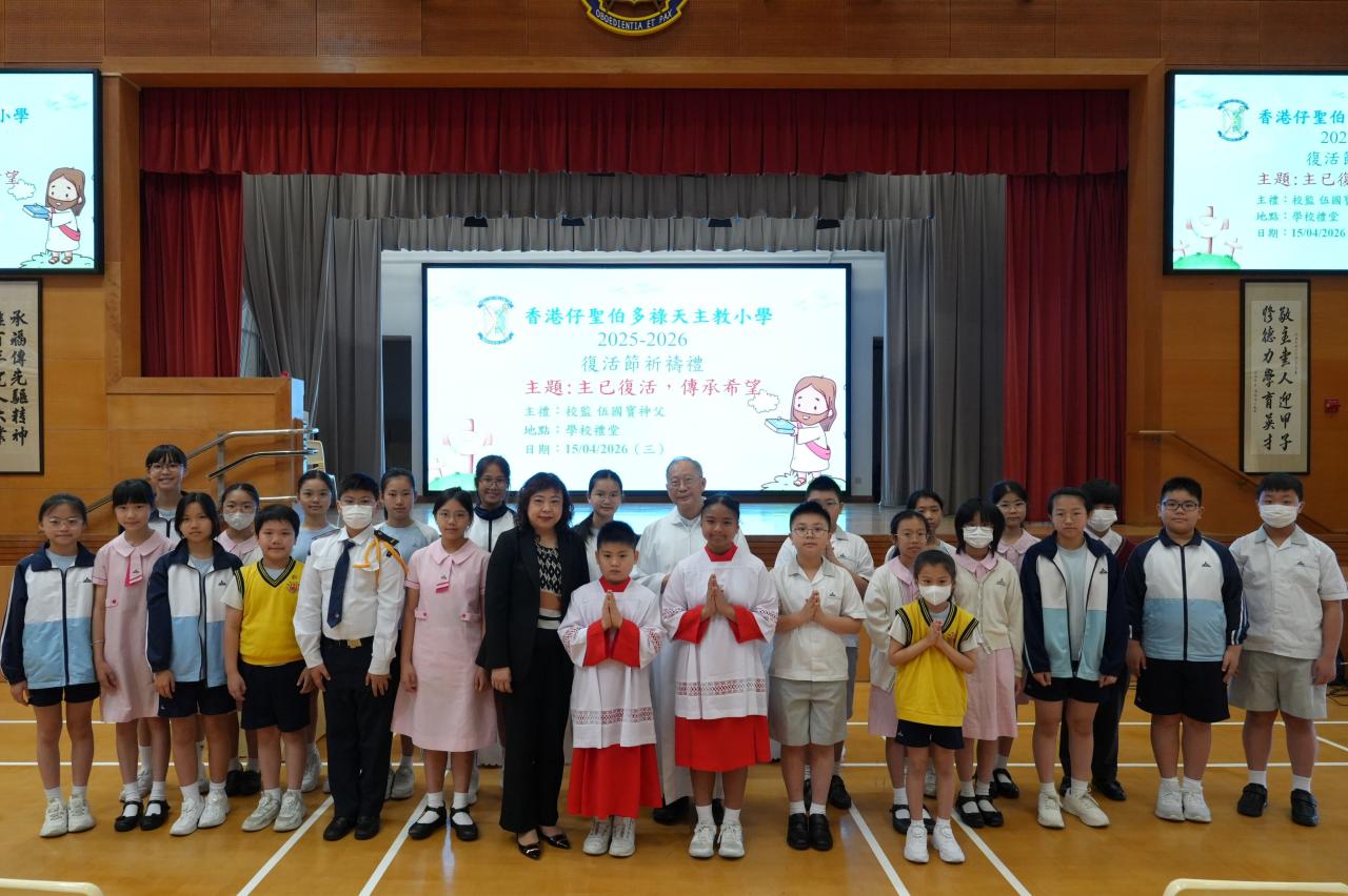 本校於15/4/2026(三)在禮堂舉行復活祈禱會,由校監伍國寶神父主禮,全體師生參與,主題是「主已復活,傳承希望」。伍神父訓勉我們要聽耶穌的教導,實踐愛德,充滿希望,有豐盛的生命。