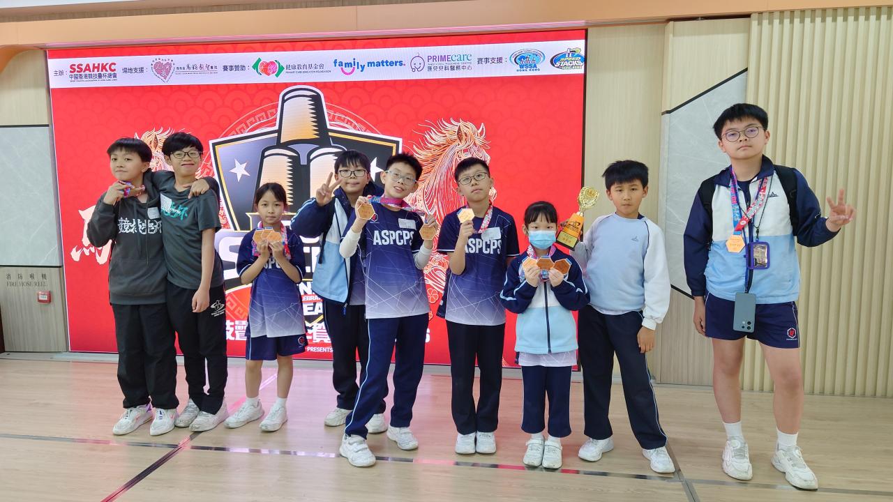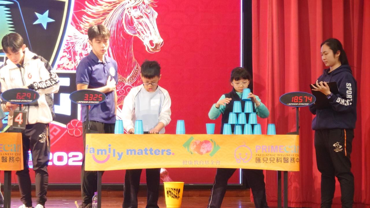 本校的競技疊杯隊隊員於2月8日參加由中國香港競技疊杯總會主辦的「競技疊杯馬年賀歲賽2026」。今次比賽共有8位隊員參加,出戰個人3-3-3計時賽、個人3-6-3計時賽、個人Cycle計時賽及團體3-6-3接力對抗賽。各參賽隊員在比賽中都全力以赴,當中3B班陳洛瑤、4D班劉樂培、4D班李潔鏇、6A班尹超賢、6C班張智竣及6E班陳駿昇於各項比賽中獲得理想的成績!期望各位隊員於其他競技疊杯比賽中繼續努力,為校爭光!