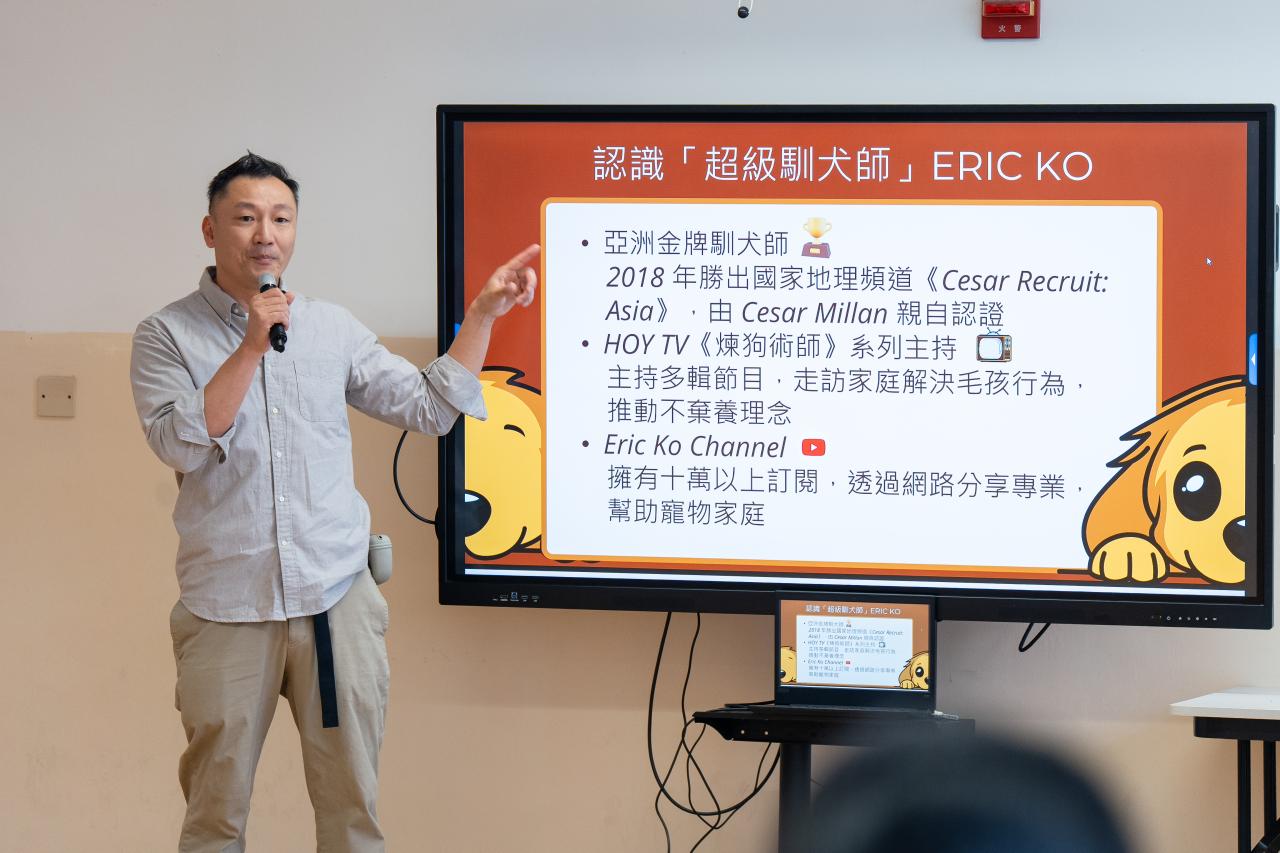 活動中,Eric 親自深入淺出地講解了馴犬師的日常工作與專業素養,並即場示範精湛的犬隻訓練技巧。學生反應熱烈,積極參與互動,近距離感受這門職業的獨特魅力。