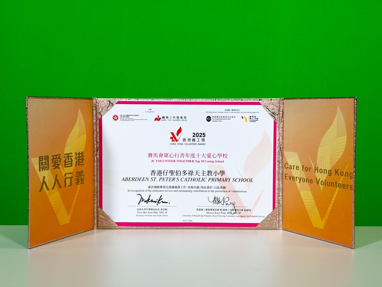 本校榮獲「香港義工獎2025 – 賽馬會眾心行善年度十大愛心學校」,嘉許本校積極參與及推廣義務工作,表現卓越。