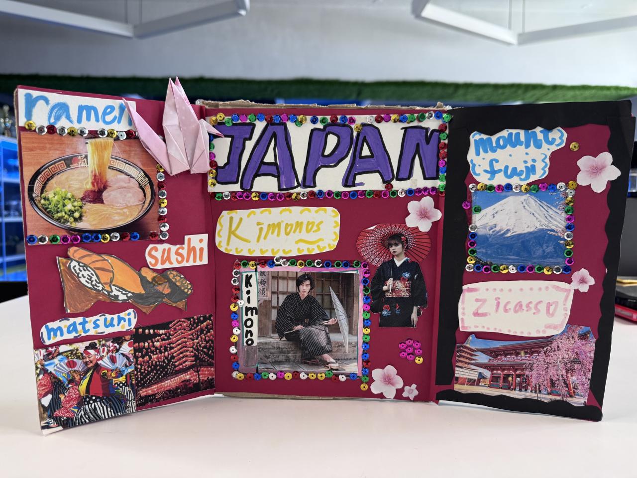 Welcome to our English learning showcase! Our Primary students created wonderful artwork inspired by the book “Around the World in Eighty Days.” They explored the cultures of China, England, France, Japan and India, and presented what they learned through drawings, collages and creative designs. Their work features Chinese symbols, English afternoon tea, French landmarks, Japanese traditions and colourful Indian patterns. Students also wrote short English descriptions to explain the cultural elements they chose. This project helped them learn about different countries, practise English in a meaningful way and develop creativity. We are proud of their effort and imagination!